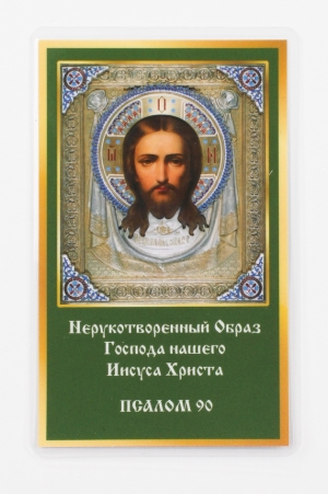 Икона в жесткой ламинации 5х8 с оборотом Спас Нерукотворный