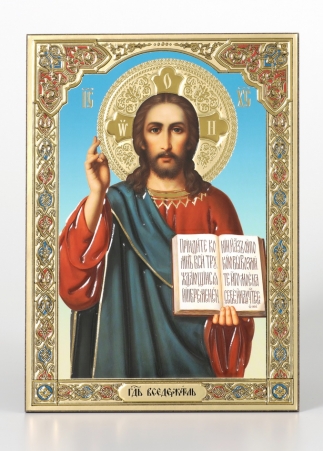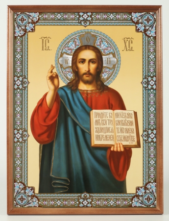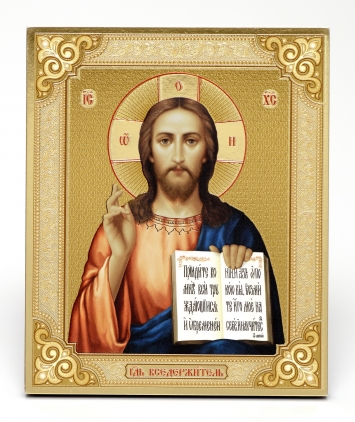 Икона на деревянном планшете 30х40 двойное тиснение, ДСП, ПВХ Спаситель ростовой №2