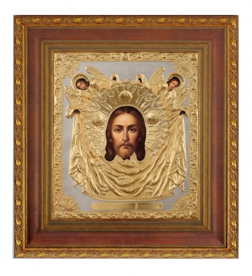 Икона живописная в киоте 30х40 масло, риза №97, матовое золочение, киот №22 Спас Нерукотворный