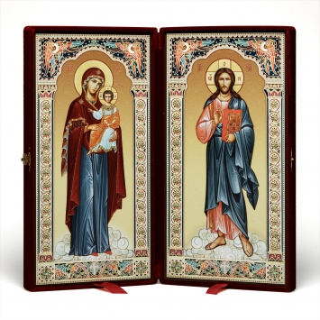 Складень в футляре 20х40 объёмная печать, лак Спаситель-Богородица 2