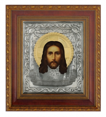 Икона живописная в киоте 24х30 масло, риза №248, черненое серебрение, киот №22 Спас Нерукотворный