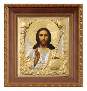 Икона живописная в киоте 24х30 масло, риза №76, матовое золочение, киот №22 Спаситель
