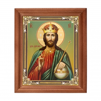 Икона в деревянной рамке №1 11х13 двойное тиснение Царь Царем (Царь Царей)