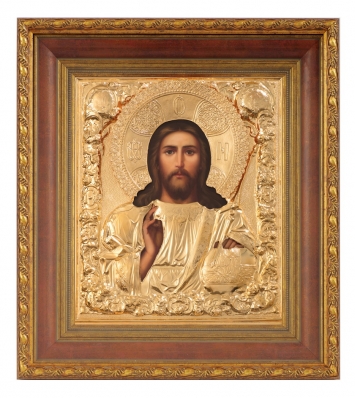 Икона живописная в киоте 24х30 масло, риза №96, матовое золочение, киот №22 Спаситель