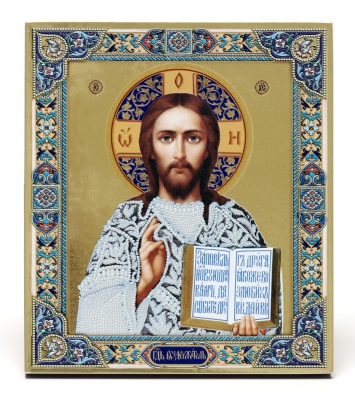 Икона на доске 13х15 золоченое покрытие, объёмная печать, лак Спаситель 5 (жемчуг)