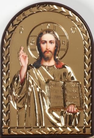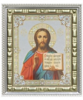 Икона в пластмассовой рамке 6х7 металлизированная Спаситель