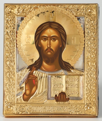 Икона штампованная 11*13 / темпера / золочение / серебро Господь Вседержитель (УИН)