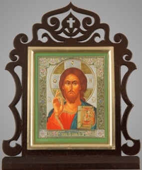 Икона на пластике 13х16 объёмная печать, лак, в пластмассовой рамке на подставке Спаситель 1