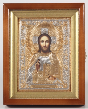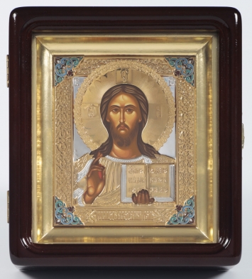 Икона именная №2 гальванопластика, эмаль, деколь, в деревянной рамке / золочение, электрофорез / Господь Вседержитель