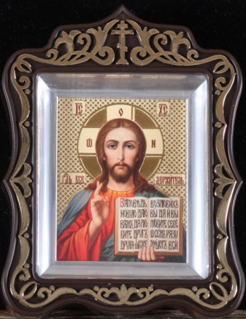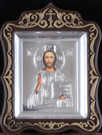 Икона в пластмассовой рамке Киот 6х7 резной металлизированный Спаситель
