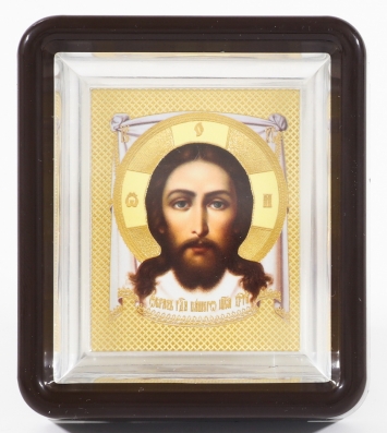 Икона в пластмассовой рамке 6х7 металлизированная Спас Нерукотворный