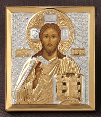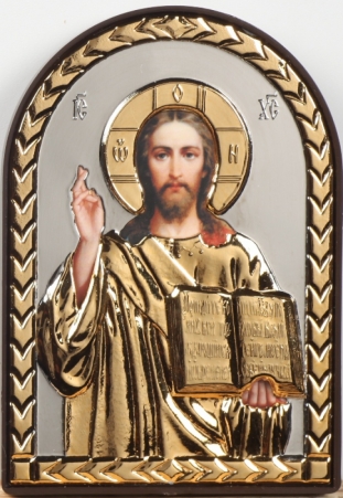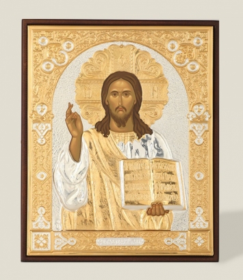 Икона штампованная 14*18 / темпера / золочение / серебро Господь Вседержитель (УИН)