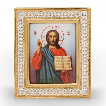 Икона настольная №141 деколь / золочение, серебрение / Спаситель