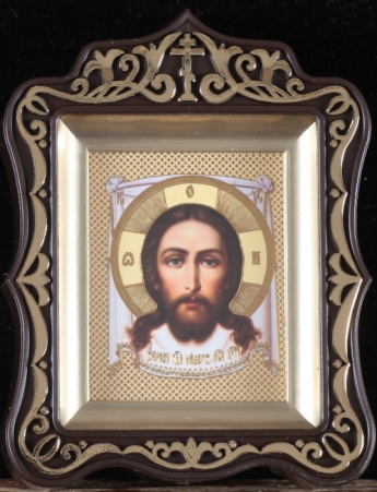 Икона в пластмассовой рамке Киот 6х7 резной металлизированный Спас Нерукотворный
