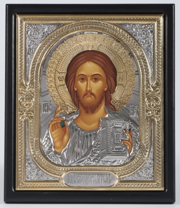 Икона в ризе 18х24 объемная №1, планшет, темпера, упаковка Спаситель