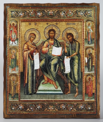 Икона на дереве 30х40 печать на плоттере Спаситель с предстоящими 1