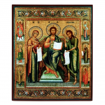 Икона на доске 30х40 объемная печать, лак №2 Спас с предстоящими