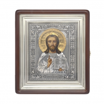 Икона живописная в серебряном окладе 24*30 / киот / Господь Вседержитель (УИН)