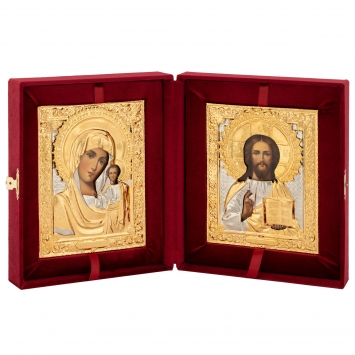 Складни живописные в футляре 18х24 масло, ризы №10, №23 (бархат) Спаситель-Казанская БМ