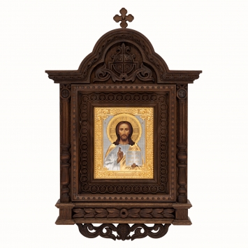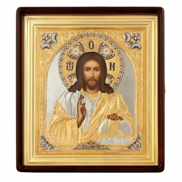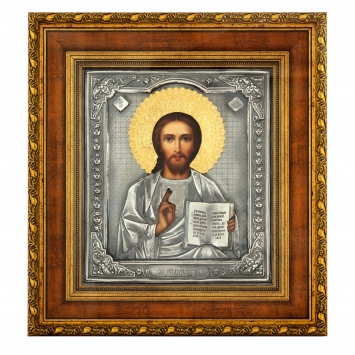 Икона живописная в киоте 24х30 масло, риза №192, черненое серебрение, киот №22 Спаситель