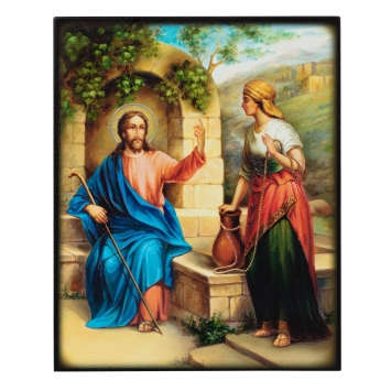 Икона на доске 13х15 объёмная печать, лак Христос и Самарянка,