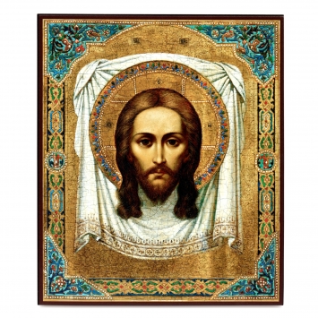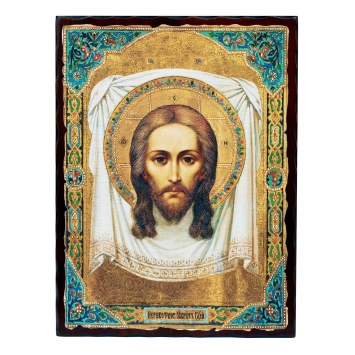 Икона на доске 30х40 объемная печать, лак №2 Спас Нерукотворный 2