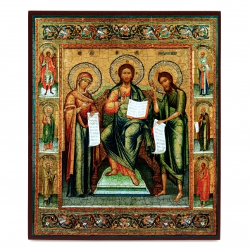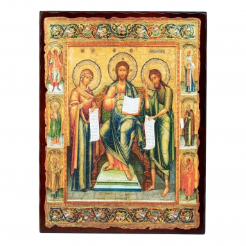 Икона на доске 30х40 объемная печать, лак №1 Спаситель с Предстоящими
