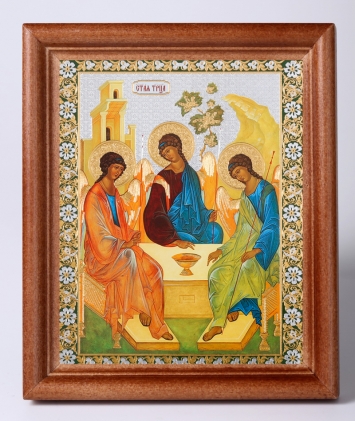 Икона в деревянной рамке №1 18х24 двойное тиснение Троица (Рублевская)