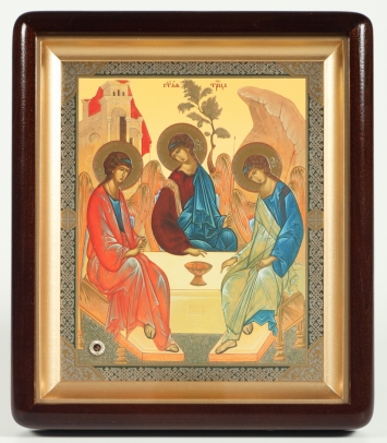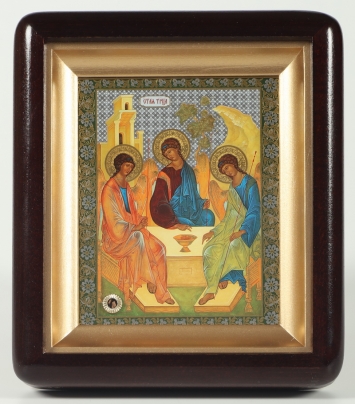Икона в деревянной рамке №1 11х13 двойное тиснение Троица (Рублевская)