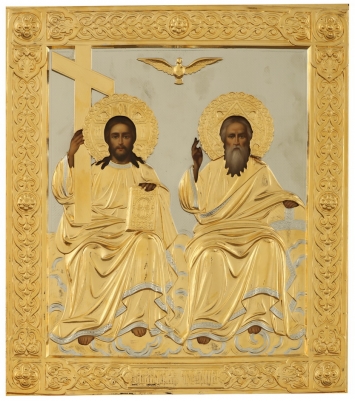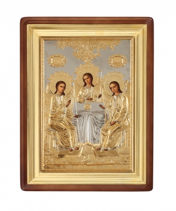 Икона настольная №128 с г / пластической вставкой / фото / золочение, серебрение / Троица