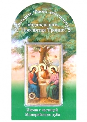 Икона в жесткой ламинации 5х8 с оборотом Троица (Рублевская)