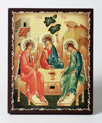 Икона на доске 13х15 объёмная печать, лак Троица 4