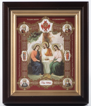 Икона в киоте 13х18 сложный, конгрев, плёнка Троица 3 (с клеймами)