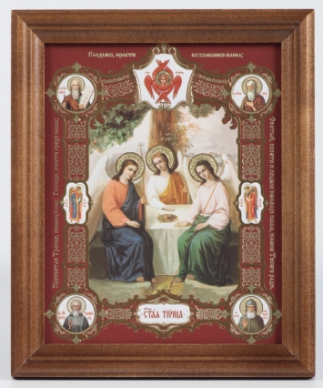 Икона в деревянной рамке 13х18 конгрев, плёнка (без стекла) Троица 3 (с клеймами)