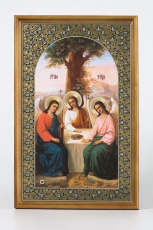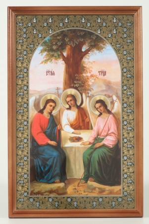 Икона на доске 40х50 объемная печать, лак Троица 2