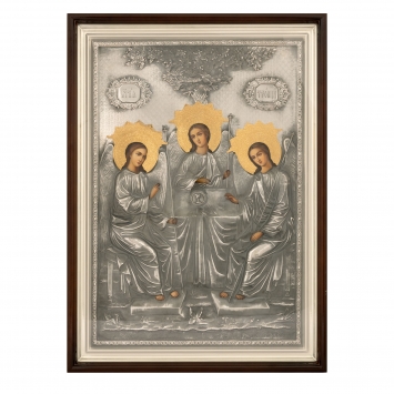 Икона живописная в киоте 50х70 масло, риза №85, черненое серебрение, киот №1 Троица