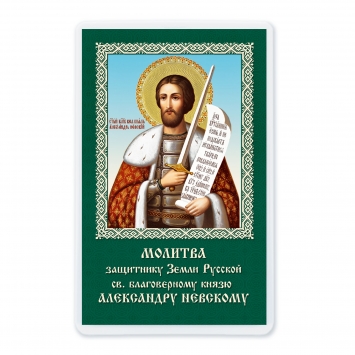Икона в жесткой ламинации 5х8 с оборотом Александр Невский