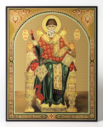 Икона на доске 40х50 объемная печать, лак Спиридон Тримифунтский