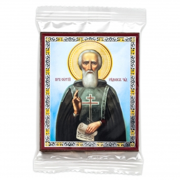 Икона в жесткой ламинации 5х8 с оборотом Сергий Радонежский