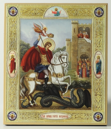 Икона на оргалите №1 11х13 двойное тиснение Георгий Победоносец