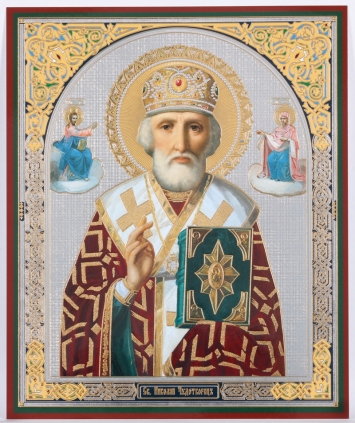 Икона на оргалите №1 11х13 двойное тиснение Николай Чудотворец 30