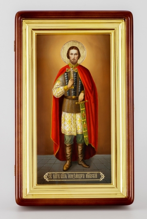 Икона живописная на доске в киоте 18х36 масло, золоченый нимб, киот №1 Александр Невский