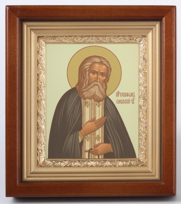 Икона на оргалите №1 11х13 двойное тиснение Серафим Саровский (с клеймами)