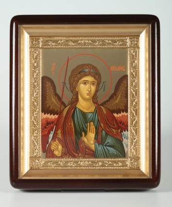 Икона в киоте 18х24 фигурный, темпера №8, рамка золочёная Михаил Архангел
