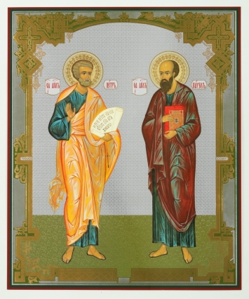 Икона на оргалите №1 30х40 двойное тиснение Петр Павел