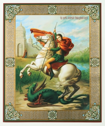 Икона на оргалите №1 30х40 двойное тиснение Чудо Георгия о змие