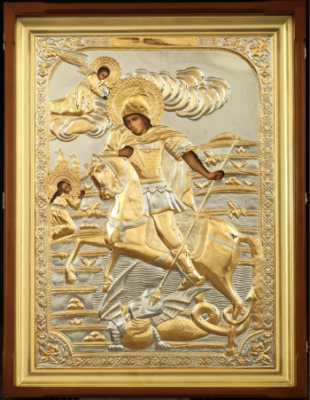 Икона живописная в киоте 65х90 масло, риза №301, киот №1 Георгий Победоносец