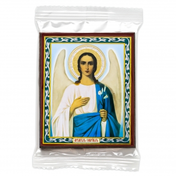 Икона на деревянном планшете 6х9 двойное тиснение, аннотация, упаковка Гавриил Архангел