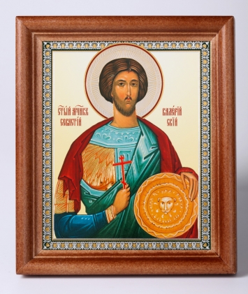 Икона в деревянной рамке 11х13 Набор с Днем Ангела, двойное тиснение Валерий Севастийский