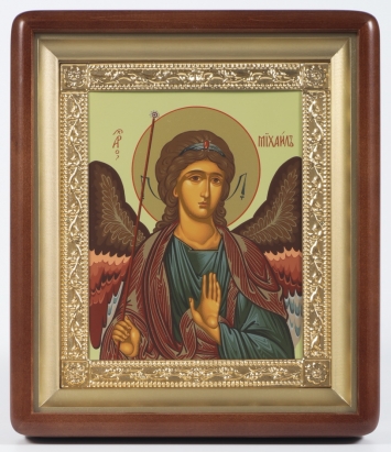 Икона в деревянной рамке №1 11х13 двойное тиснение Михаил Архангел (поясной) 2